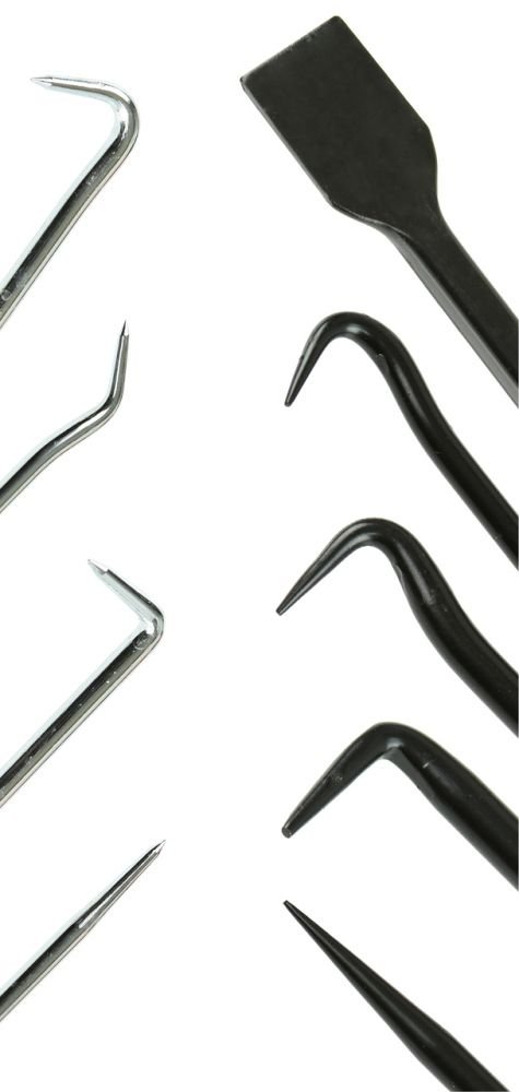 Ideální na montáž a demontáž malých těsnících O-kroužků, pružin, podložek, na manipulaci s vodiči elektroinstalace automobilů, na čištění drážek, na čištění mřížek chladičů apod. Háčky mají tvrzené a chromované hroty. Rukojeť je vyrobena z kvalitního protiskluzového materiálu. Celá sada je vyrobena kvalitních materiálů.