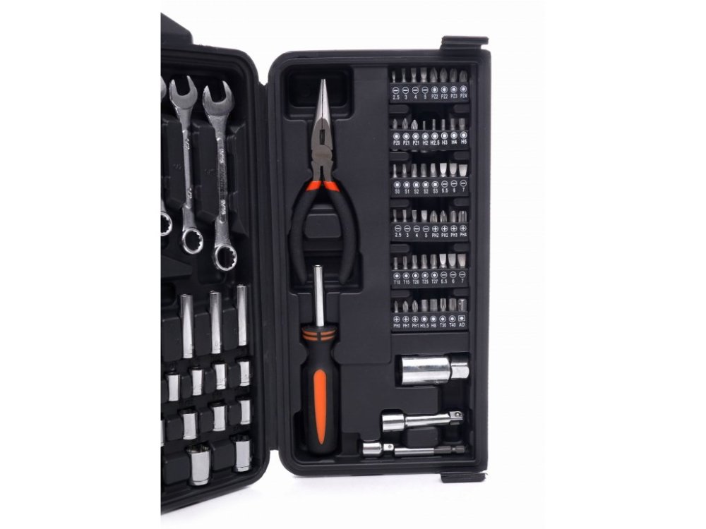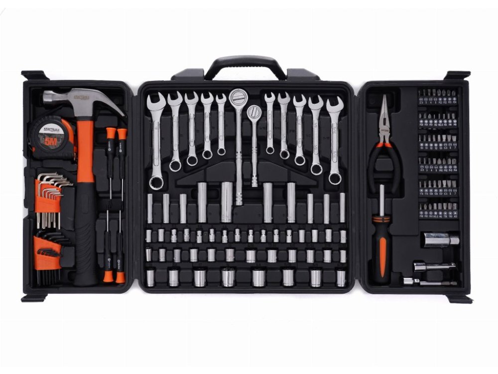 Univerzální sada nářadí KRAFT&DELE obsahuje 140 kvalitních nástrojů uložených v přehledném kufru. Díky promyšlenému uspořádání je každý nástroj snadno dostupný a práce tak probíhá rychleji a efektivněji.