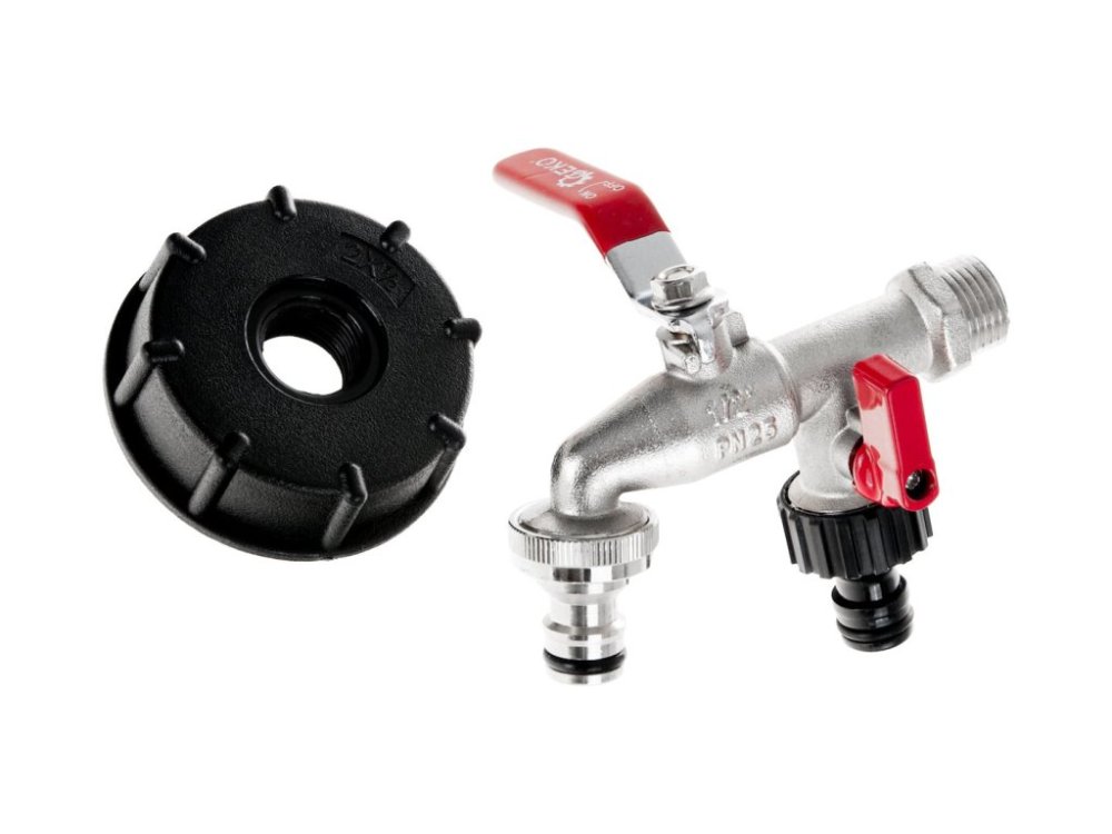 Sada pro IBC kontejner, redukce vnitřní závit S60×6 a zahradní ventil , vstup 1/2", výstup 2×3/4" - GEKO