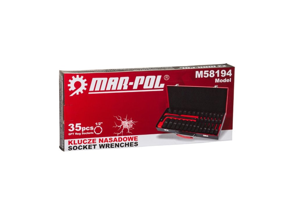 Sada rázových hlavic 1/2", nástrčné šestihranné 8–32 mm, 35 ks - MAR-POL