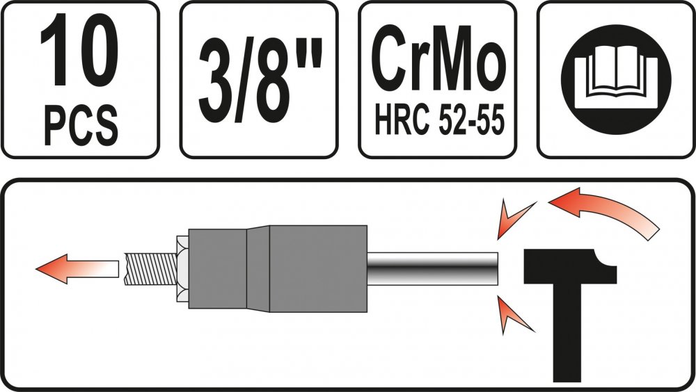 Sada vytahováků pro zlomené šrouby YATO YT-06035. Profesionální 5dílná sada pro odstranění zlomených šroubů. Zahrnuje extraktory s nejběžnějšími průměry, díky čemuž je nenahraditelný v dílně nebo a...