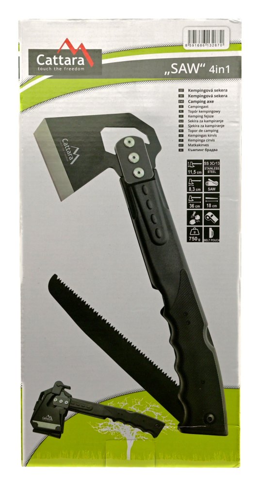 Kempigová sekera SAW 4v1 s pilkou, je ideálním doplňkem pro camping, turistiku a další outdoorové aktivity. Je navržena tak, aby byla lehká a snadno přenosná.