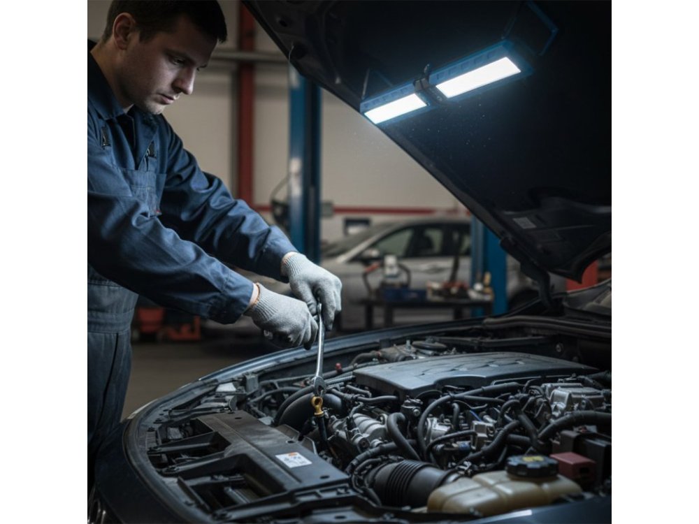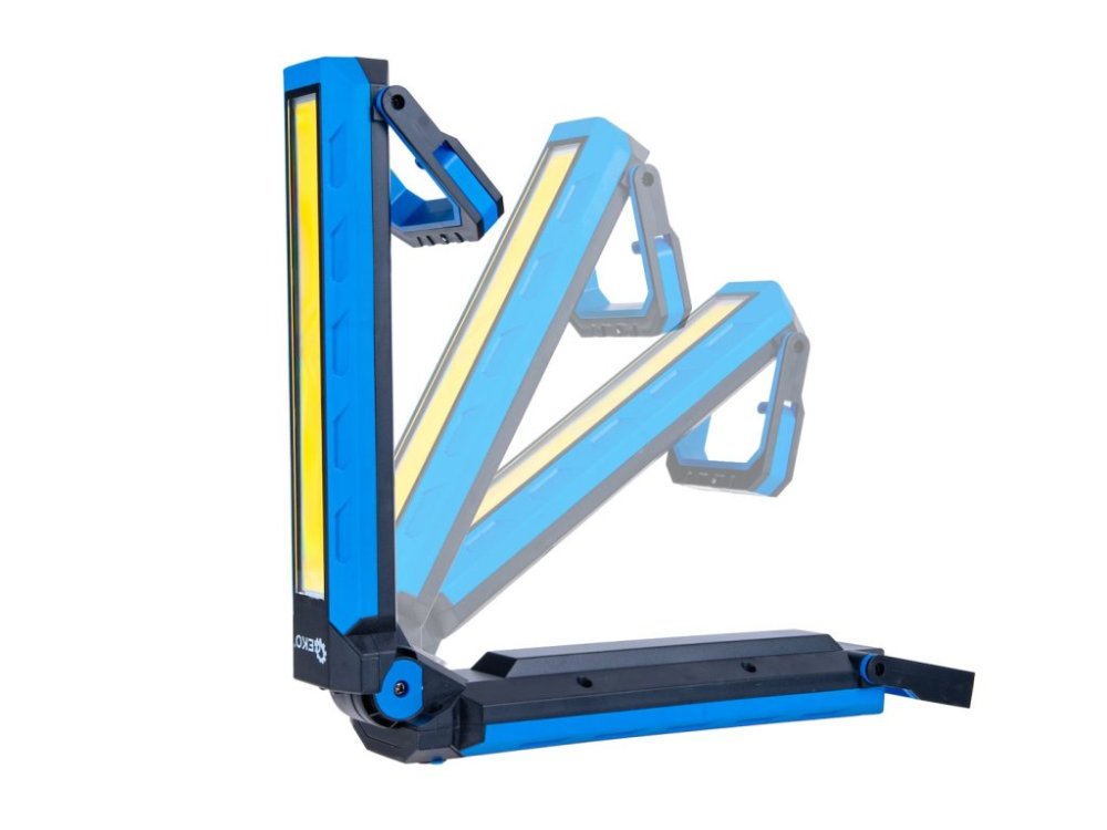 Skládací konstrukce s pohyblivým ramenem umožňuje přesné nastavení úhlu osvětlení podle aktuálních potřeb. Lampu lze nastavit od osvětlení rovného povrchu až po osvětlení pod úhlem, což usnadňuje práci na motoru, podvozku nebo v obtížně přístupných místech.