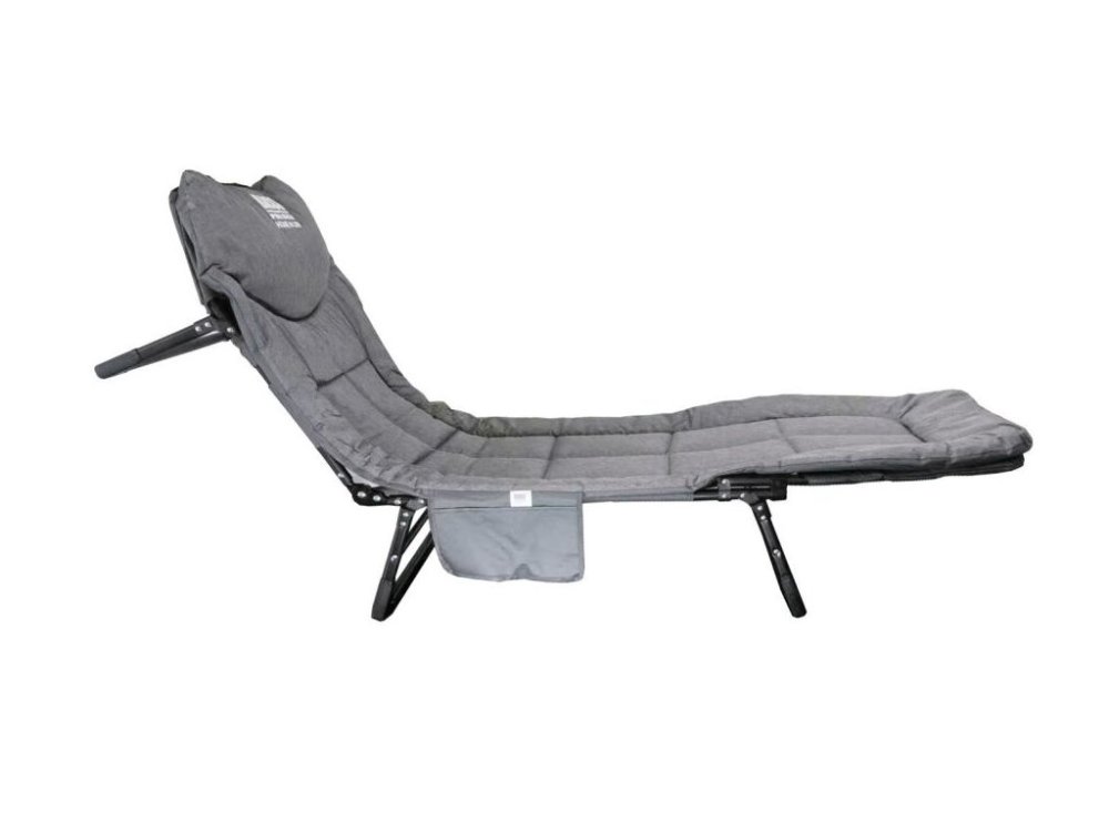 Lehátko je navrženo s důrazem na lehkost a odolnost. Jeho lehká ocelová konstrukce zajišťuje pevnost a snadnou manipulaci díky nízké hmotnosti. Lůžková část lehátka, je zhotovena z polyesteru 1200D. Tento materiál je vysoce odolný proti povětrnostním vlivům a poskytuje pohodlný a trvanlivý povrch pro odpočinek. Pro zvýšení komfortu je lehátko vybaveno 5 cm silnou pěnovou matrací, která zajišťuje pohodlný spánek nebo odpočinek, i při delším používání. Výška lehátka je 30 cm, což zajišťuje pohodlné vstávání a lehání. Lehátko má také praktickou kapsu na jedné straně, ideální pro uložení drobností, jako jsou knihy či mobilní telefon. Celkový design lehátka spojuje funkčnost s vysokou mírou komfortu, což z něj činí ideální volbu pro venkovní použití. Lehátko má nosnost 150 kg, což zajišťuje jeho bezpečné použití pro širokou škálu uživatelů.