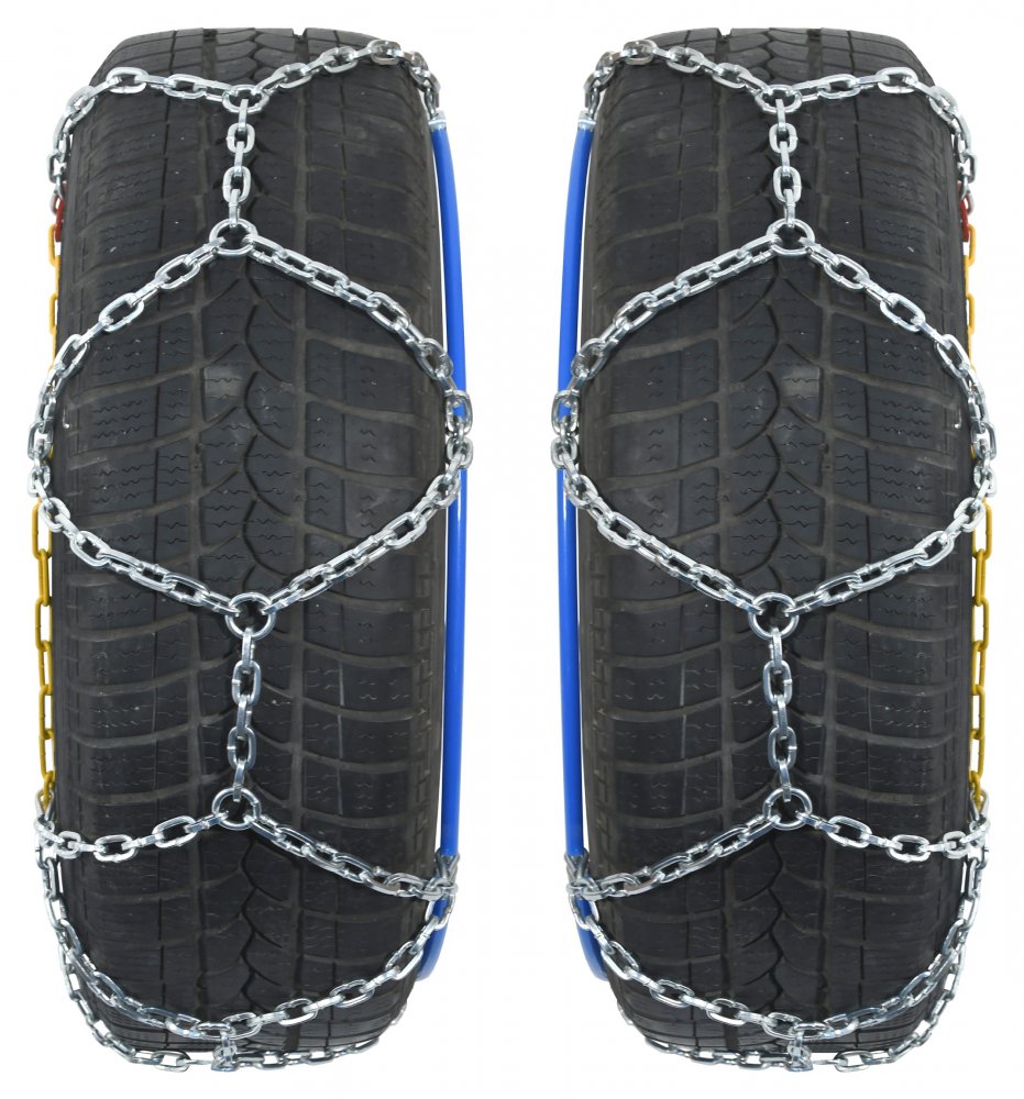 Sněhové řetězy se zesílenými oky, pro osobní vozidla do hmotnosti 2200 kg, splňující evropské normy včetně v Rakousku vyžadované "ÖNORM V 5117". Řetězová síť je uspořádána do tvaru „X“ pr...