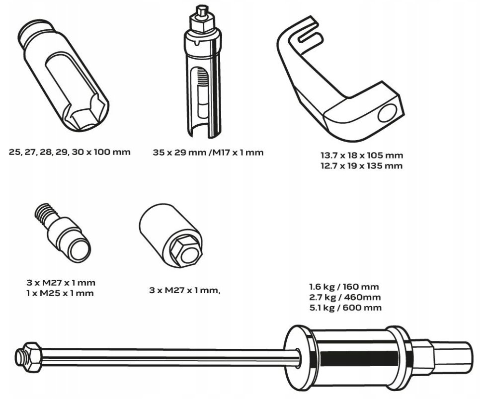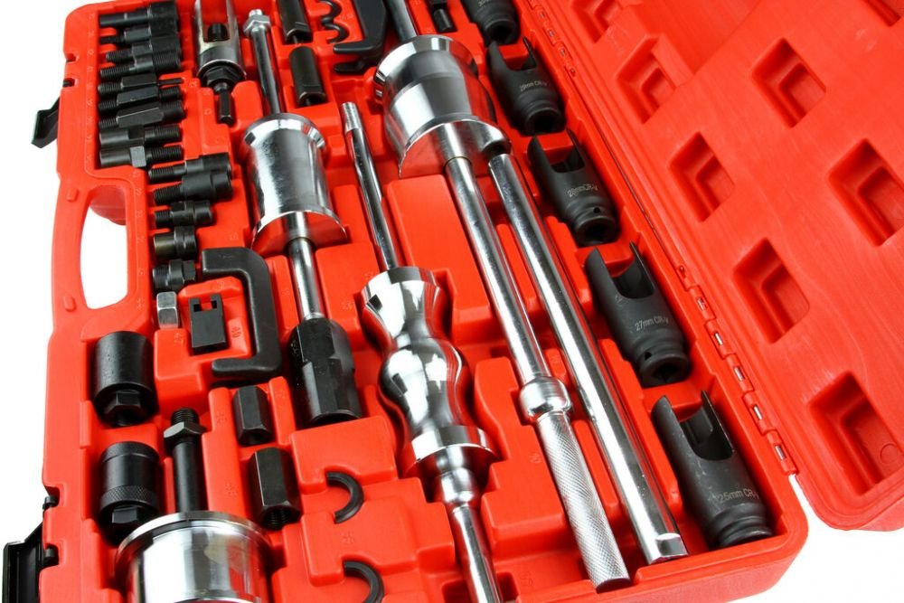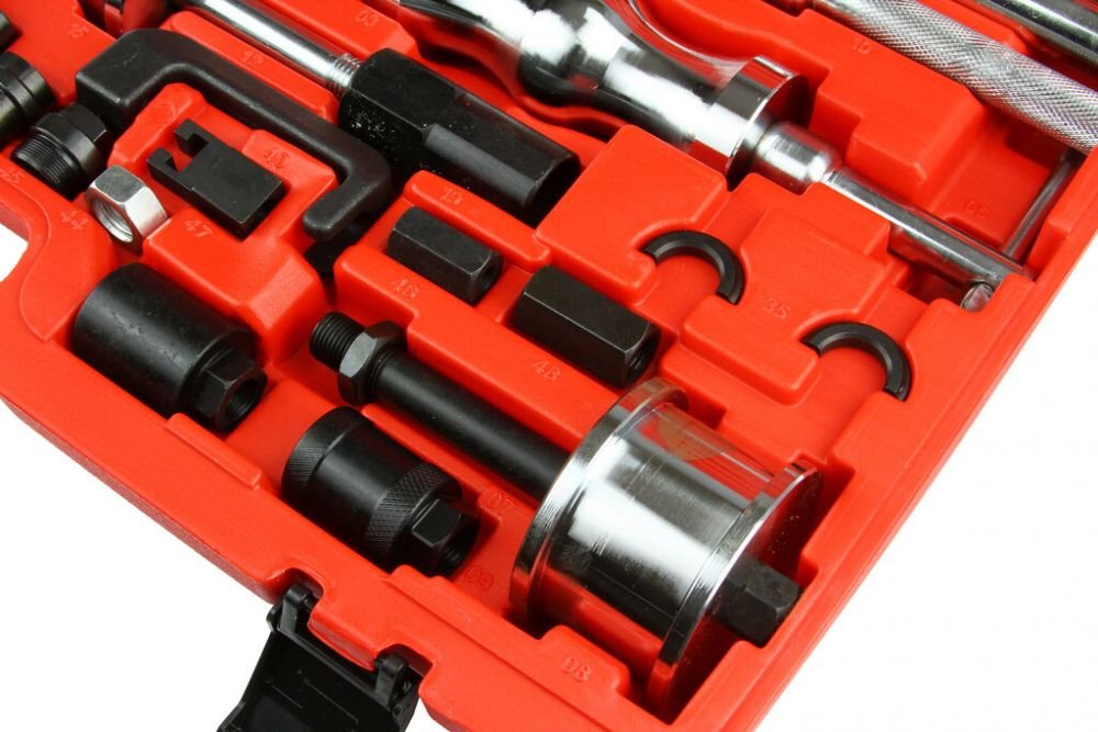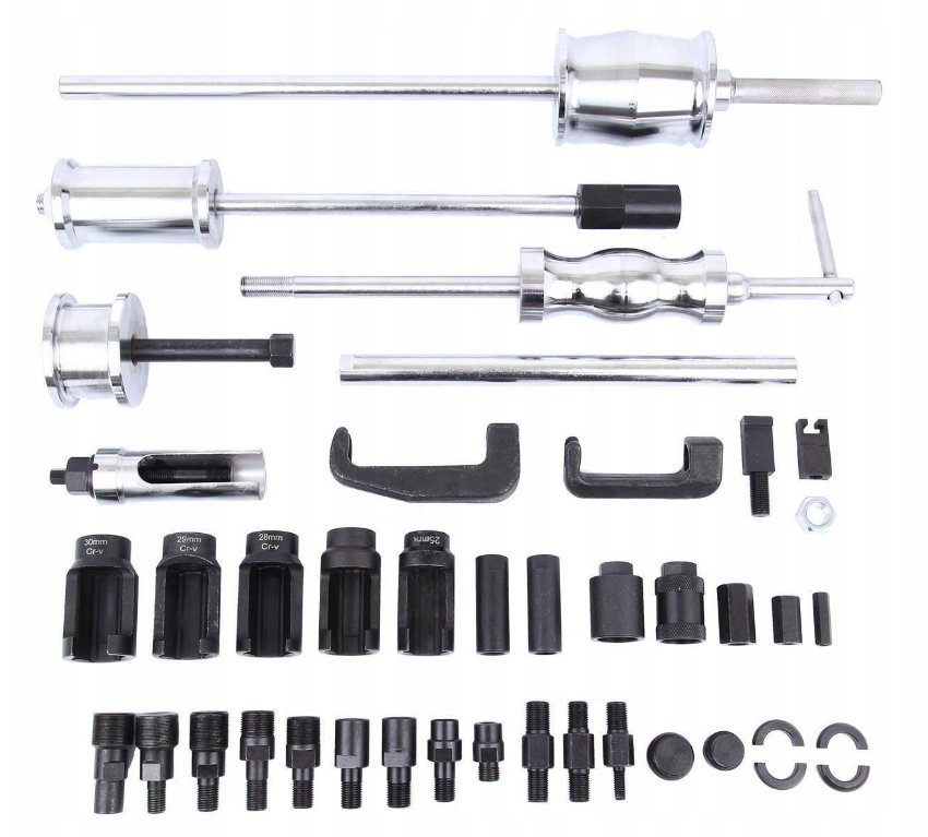 Velká sada univerzálních stahováků na demontáž zapečených vstřikovačů dieselových motorů (Bosch, Delphi, Siemens, Denso aj.). Ideální pro demontáž různých typů dieselových vstřikovačů bez potřeby dalších adaptérů. Zvyšuje efektivitu práce a zároveň snižuje riziko poškození vstřikovačů při pokusu o demontáž vstřikovače.