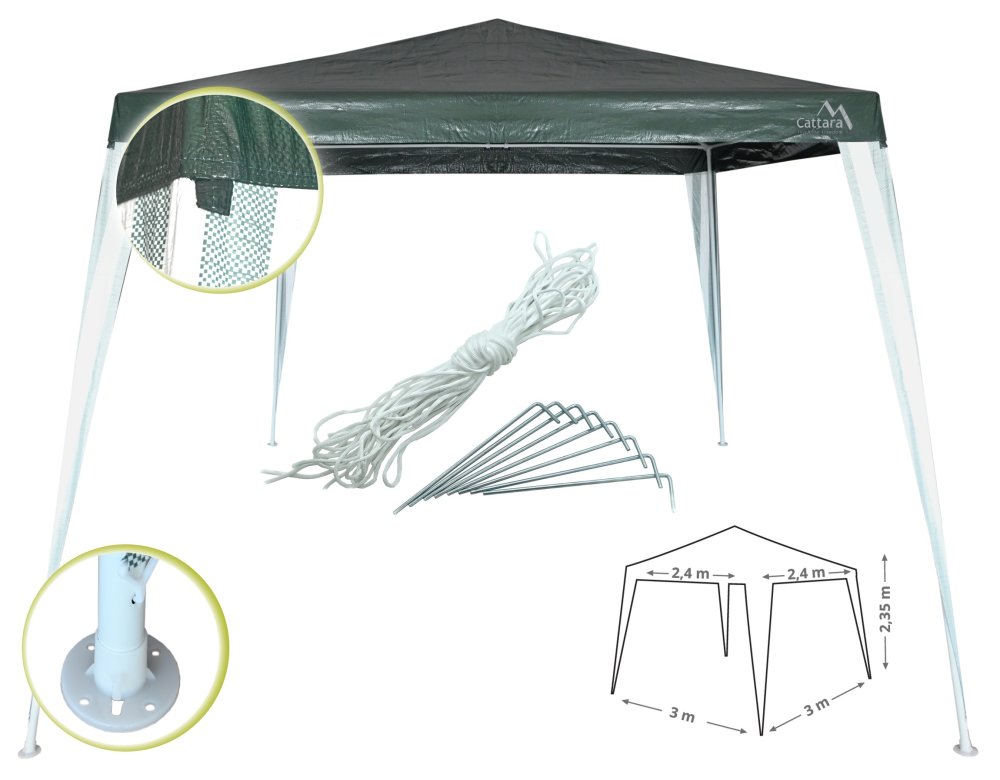 Skládací zahradní stan s rozměry 3 x 3 m s podchozí výškou 1,75 m.