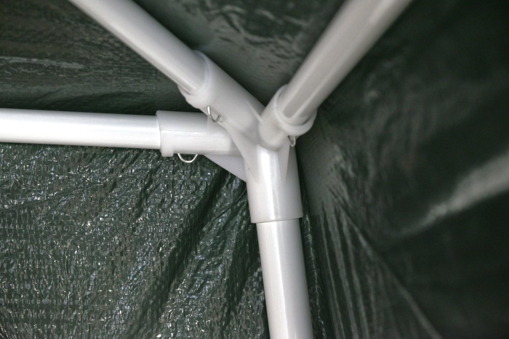 Důmyslná konstrukce stanu z oceli zajistí rychlé sestavení i složení. Nohy jsou ve spodní části opatřeny patkou, s otvory pro ukotvení. Pro bezpečné uchycení je součástí balení 4x provázek a 8x standartních kolíků.