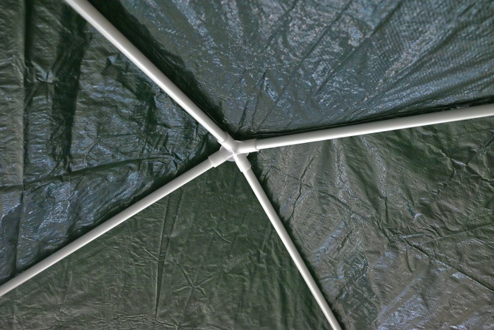Nepromokavý materiál zajistí použití stanu při slunném dni i v deštivém počasí. Stan ASSEN je ideální řešení pro zahrady bez zastřešených teras. Střecha zabírá prostor 2,4 x 2,4 m.