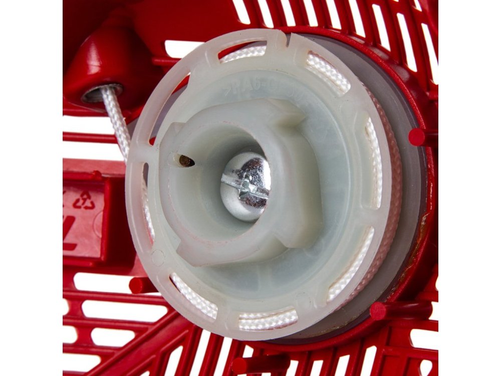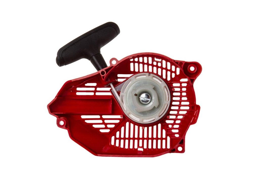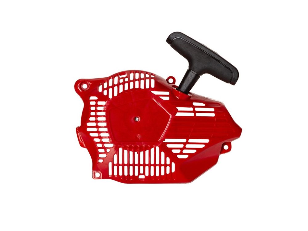 Startér se skládá z několika důležitých částí - plastového krytu, navíjecího mechanismu s pružinou, odolného startovacího lanka a ergonomické rukojeti pro pohodlné uchopení.