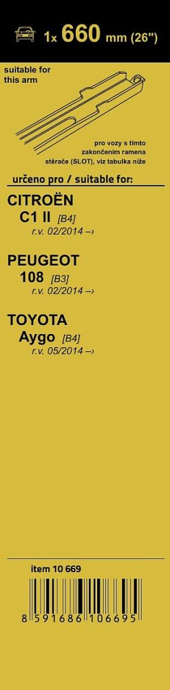 Plochý stěrač FLAT (na přední okno) se speciálním uchycením. Délka stěrače a systém uchycení na ramínko je přizpůsobena vybraným vozům (viz tabulka použití).