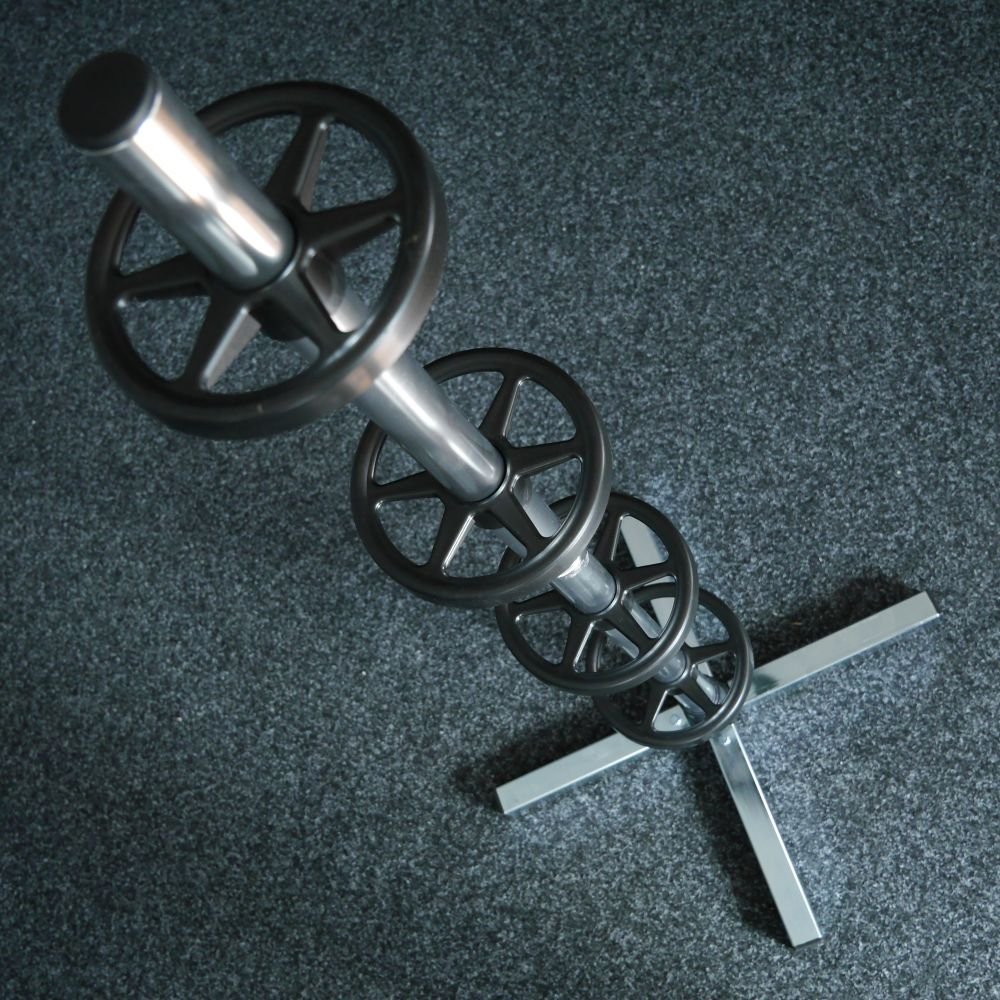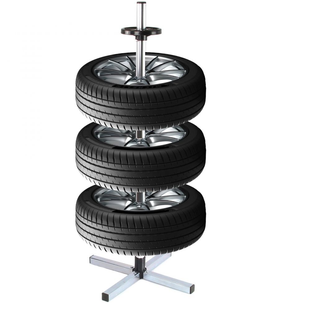 Stojan pojme až 4 kola o šířce max. 235 mm. V případě menšího počtu kol se úměrně zvětší max. šířka pneumatiky. Nastavitelné držáky / rozpěrky lze odstranit, aby se zvýšila maximální šířka pneumatiky. Stojan stojí pevně na čtyřbodové základně. Je lehký, praktický a snadno se pohybuje.