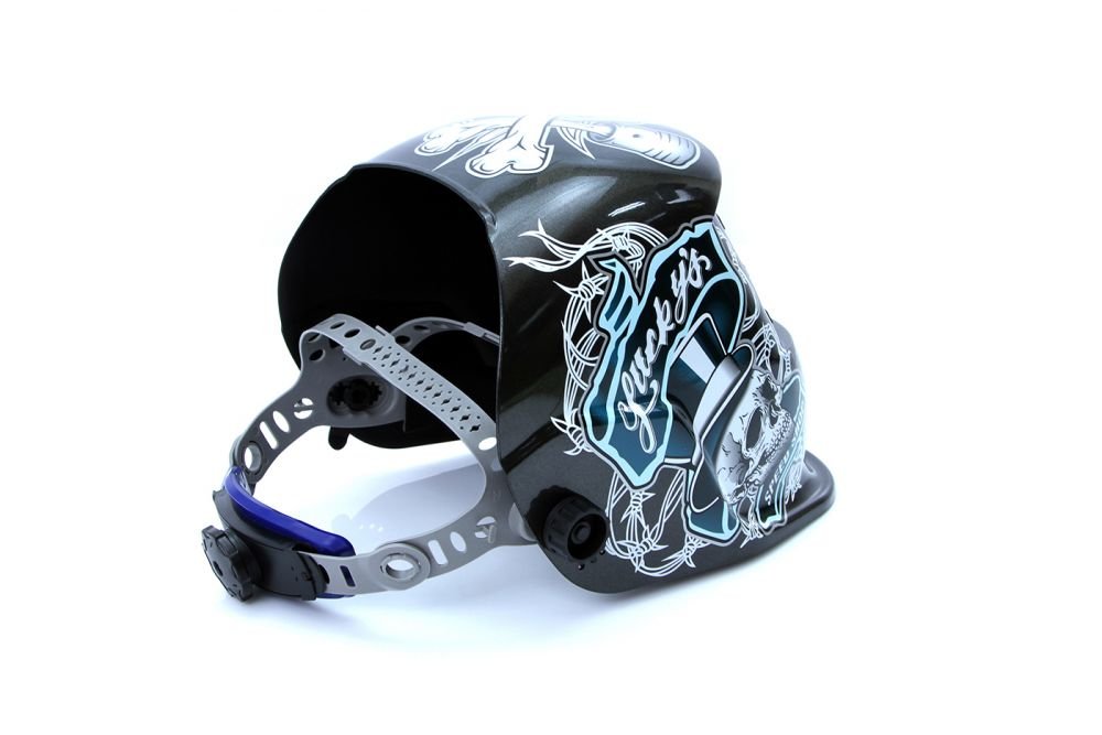 Svářečská kukla samostmívací s potiskem lebka, černo-bílá MAR-POL