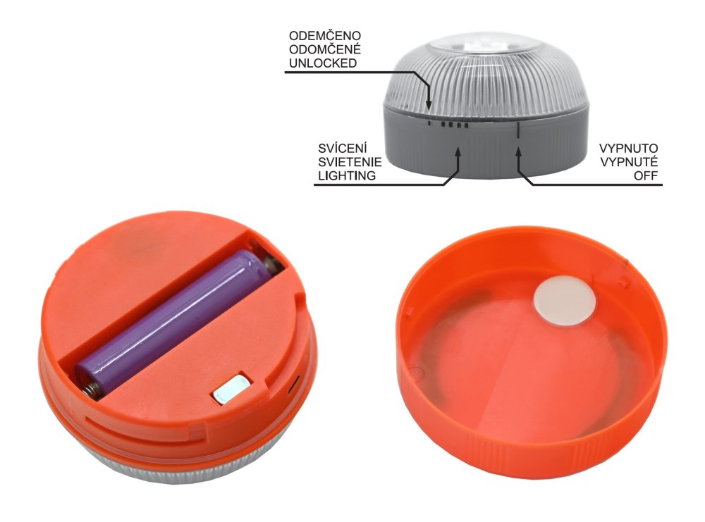 Tělo svítilny je vyrobeno z plastu a nabízí stupeň krytí IP54. Pomocí silného magnetu lze výstražné světlo rychle přichytit na karoserii vozidla. Na krytu i těle svítilny jsou značky poloh pro snadné ovládání. Zapnutí lze provést pootočením do polohy svícení, případně lze aktivovat přiložením na kovový povrch díky magnetu. Režimy svícení se střídají postupně při každé další aktivaci.