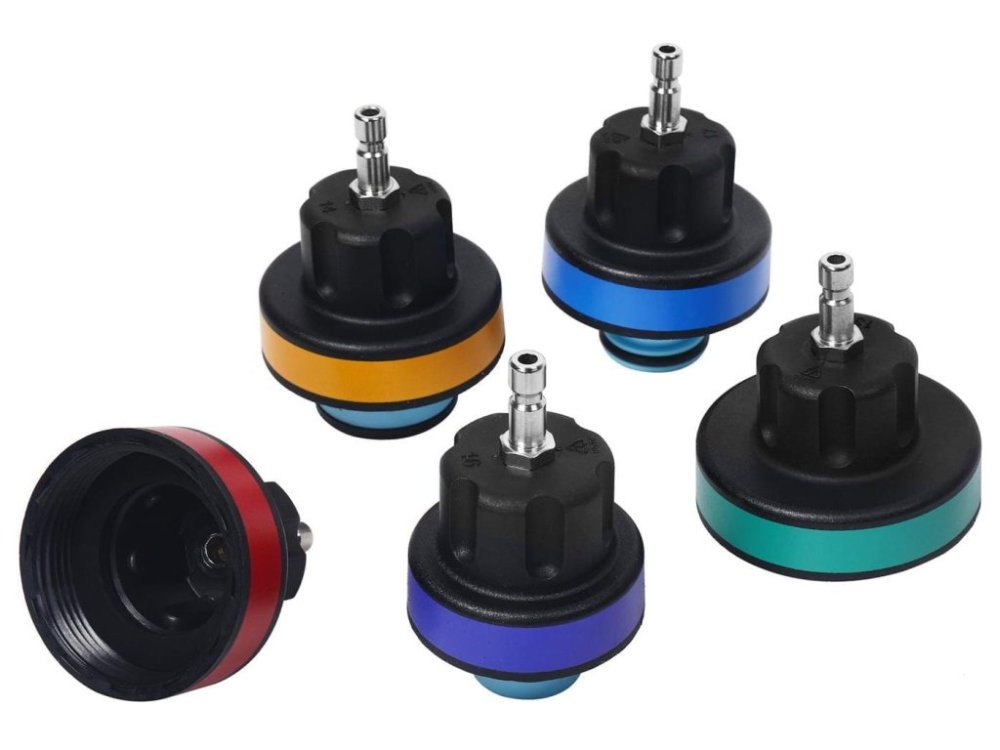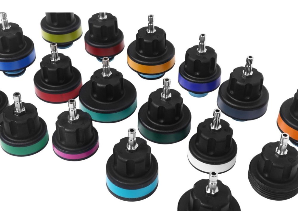 Sada je vybavena 17 barevně kódovanými a očíslovanými adaptéry různých průměrů plus univerzálními gumovými adaptéry, které zajišťují kompatibilitu s většinou evropských, amerických a asijských modelů vozidel. Ať už jde o BMW, Mercedes-Benz, Audi, Volkswagen, Toyota, Ford, Opel, Peugeot, Citroën, Fiat, Renault, Honda, Hyundai, Nissan, Mazda nebo další značky – tento tester si se vším poradí.