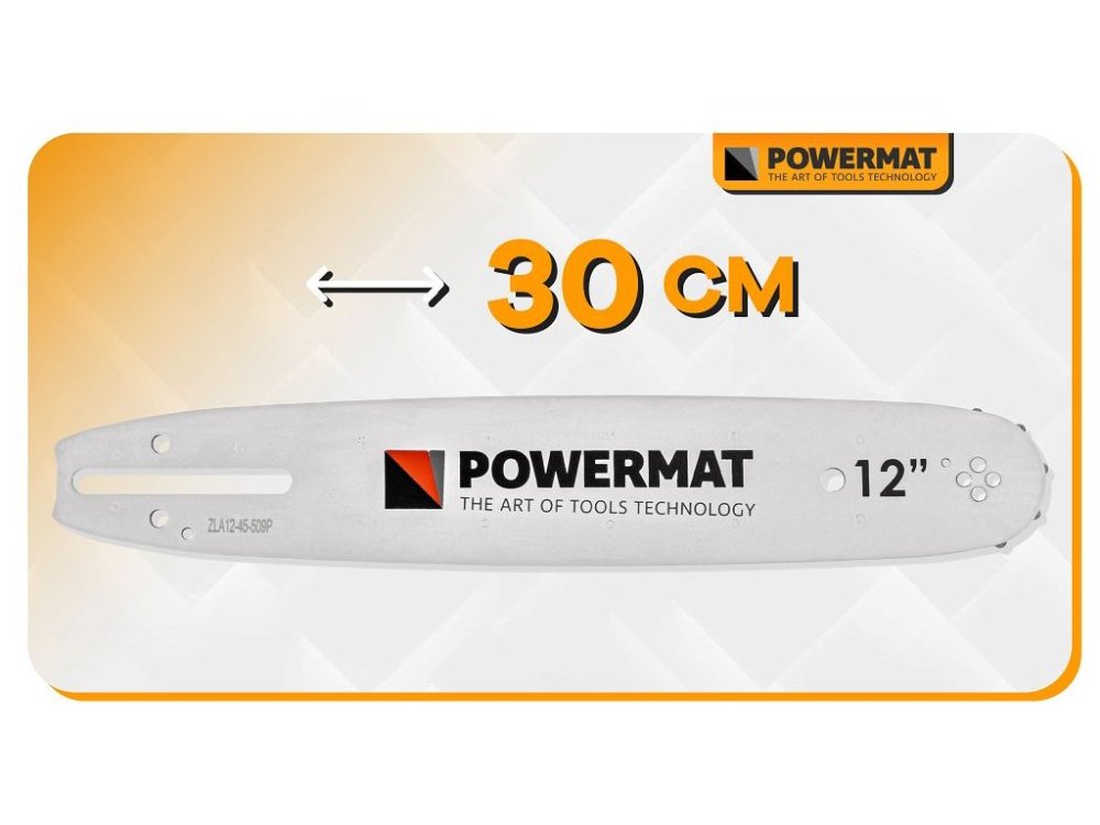 Vodící lišta POWERMAT představuje kvalitní náhradní díl pro řetězové pily. Lišta je dodávána se dvěma pilovými řetězy, což umožňuje okamžitou výměnu při opotřebení nebo poškození řetězu.
