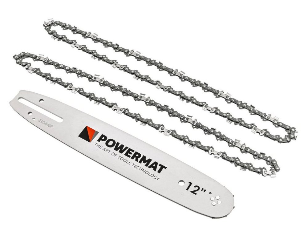 Vodící lišta pro řetězové pily 12" + 2 řetězy 3/8" 1,3 mm 45z - POWERMAT