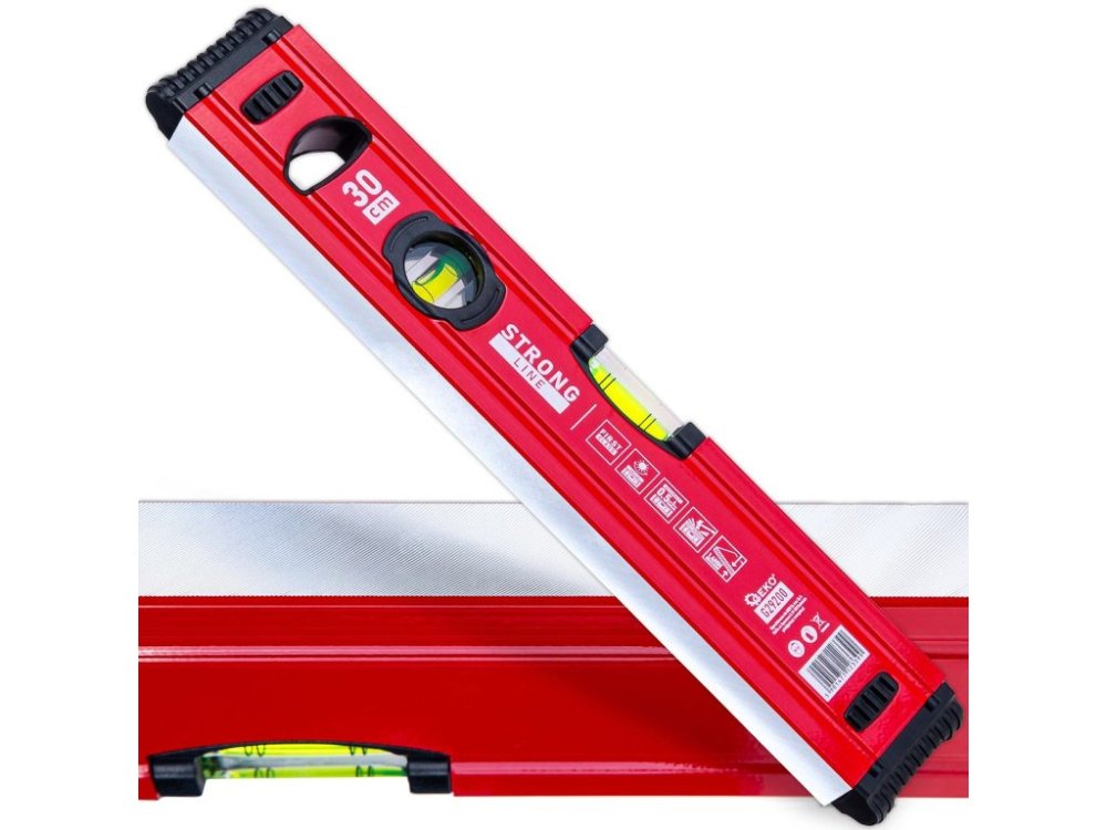 Magnetická vodováha STRONG LINE najde uplatnění v široké škále profesí a činností – od truhlářství, instalatérství a obkladačství přes montáž kovových konstrukcí, sádrokartonu a oken až po podlahářské práce a instalaci velkoplošných prvků. Červená práškově lakovaná povrchová úprava zajišťuje dlouhou životnost a dobrou viditelnost nástroje na pracovišti.