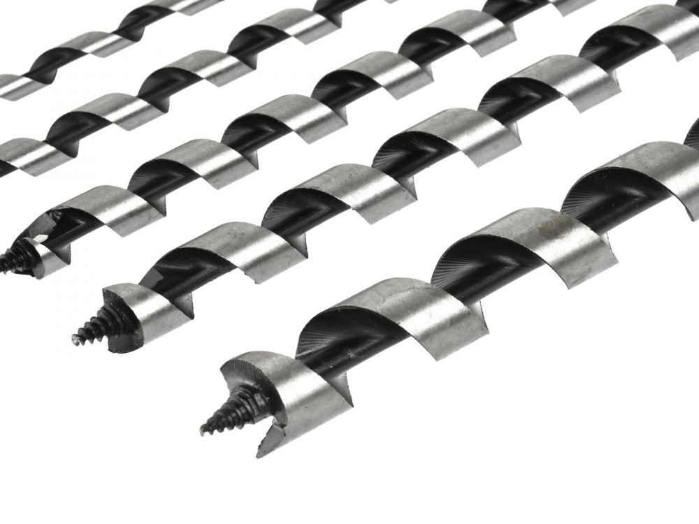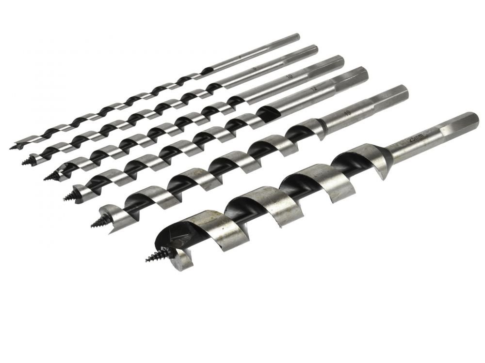 Sada hadovitých vrtáků pro vrtání hlubokých otvorů do měkkého, tvrdého dřeva, trámů, příčníků, lepených vazníků. Vrtáky mají středící hrot se závitem pro přesné vrtání.Vrtáky mají středící hrot se závitem pro přesné vrtání. Kalené hlavní a pomocné břity zvyšují životnost vrtáku, zatímco Lewisova spirála zajišťuje rychlý odvod třísek. Vhodný je také pro vrtání otvorů pro válcové čepy a pro předvrtání otvorů pro spojování krokví.