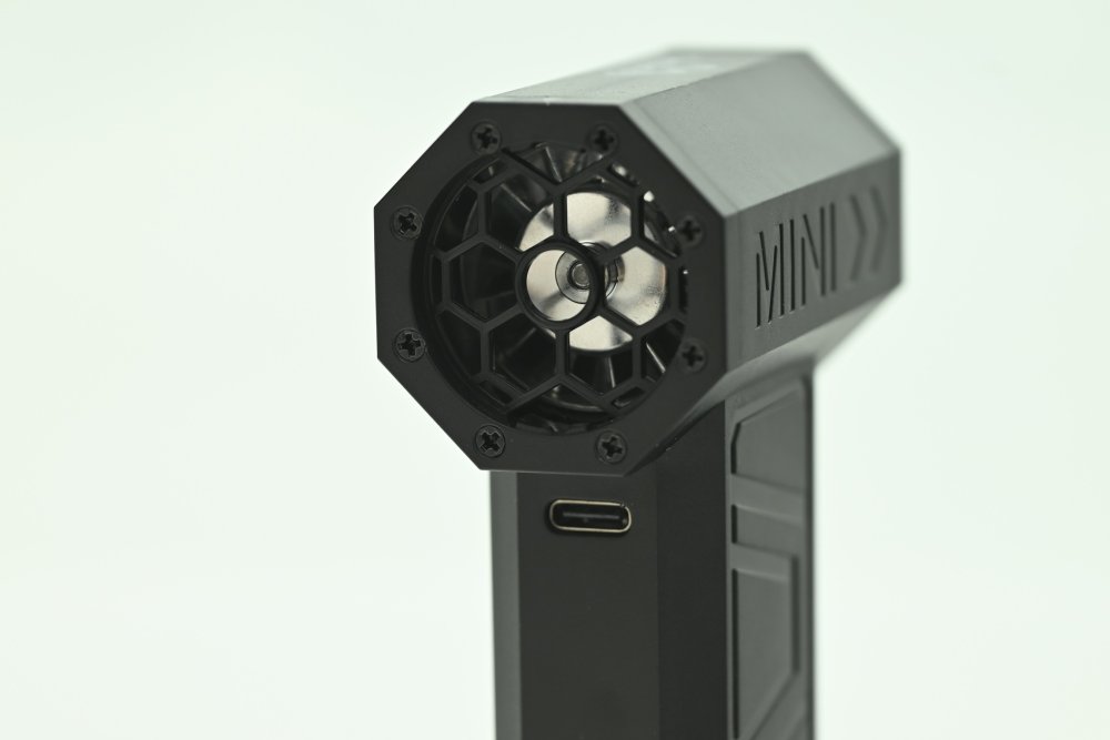 Ovládání je jednoduché a rychlé, zapnutí probíhá dvojitým stiskem spouště, změna výkonu dalším stiskem a vypnutí dlouhým podržením spouště. Vestavěný Li-ion akumulátor o kapacitě 4000 mAh umožňuje až 60 minut provozu a nabíjí se pomocí USB-C konektoru. Stav nabití je signalizován červenou (nabíjení) a modrou (hotové nabití) LED.