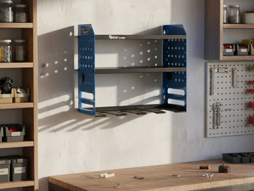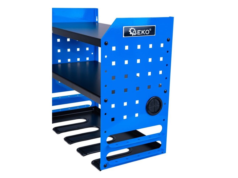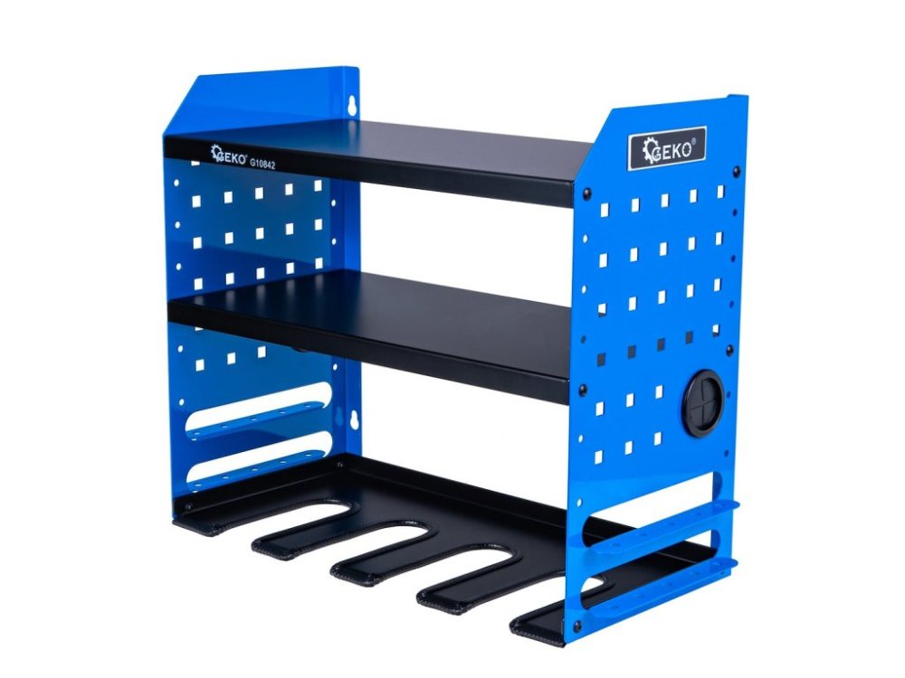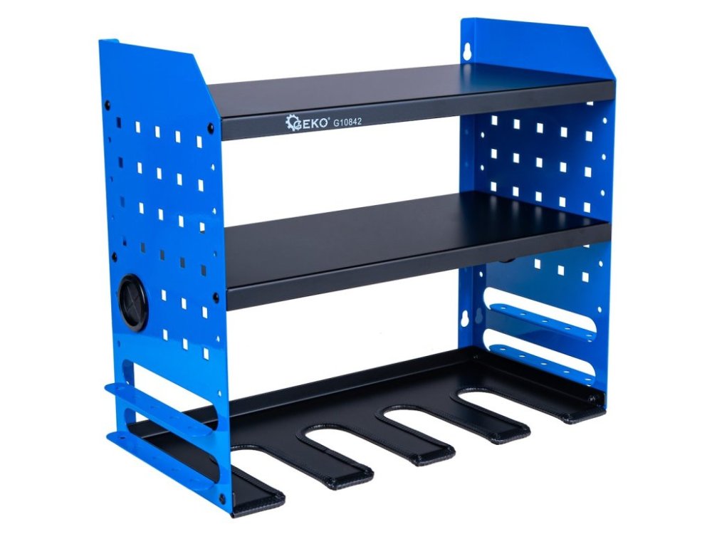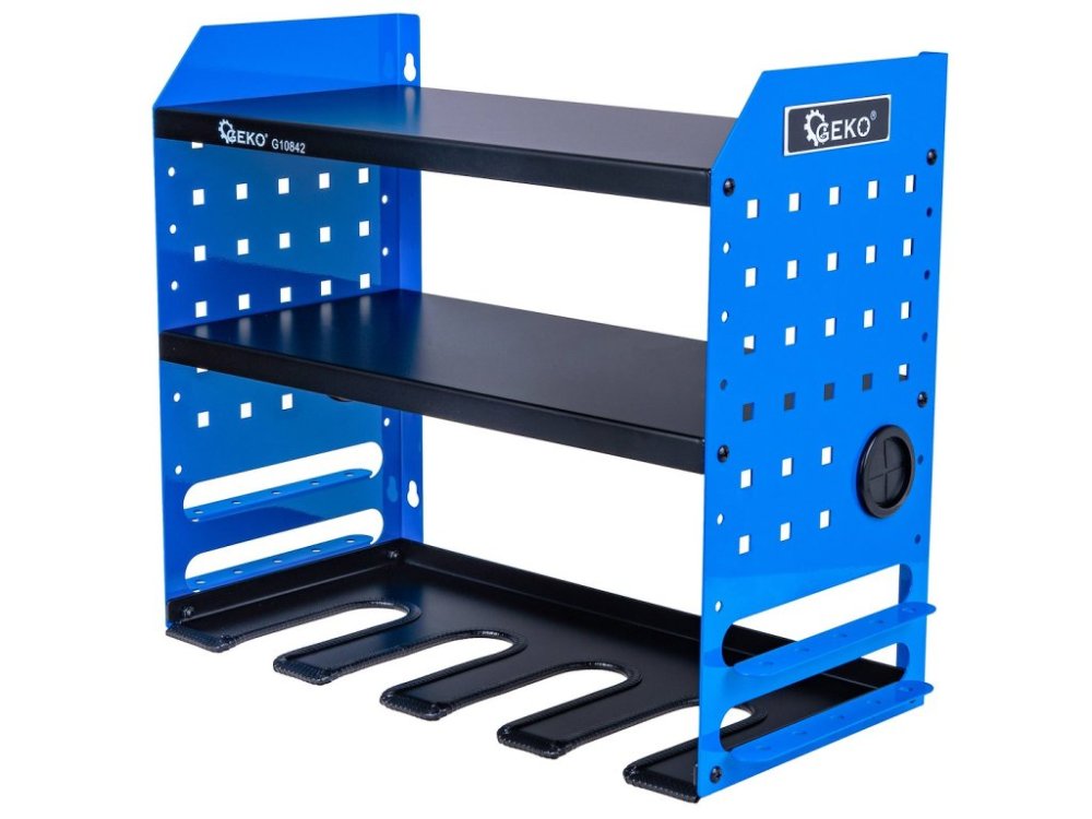 Tento robustní dílenský organizér nabízí funkční řešení pro uložení a rychlý přístup k často používanému elektrickému nářadí. Díky promyšlenému designu a práškově lakované oceli je organizér ideální pro použití v garáži, dílně, servisním voze nebo výrobní hale. Organizér je vybaven 4 sloty na nářadí a 2 policemi, takže lze na jednom místě ukládat vrtačky, brusky, šroubováky a nezbytné příslušenství. Díky speciálním výřezům ve spodní části je možné nářadí rychle zavěsit a vytáhnout jednou rukou, což výrazně zrychluje práci.